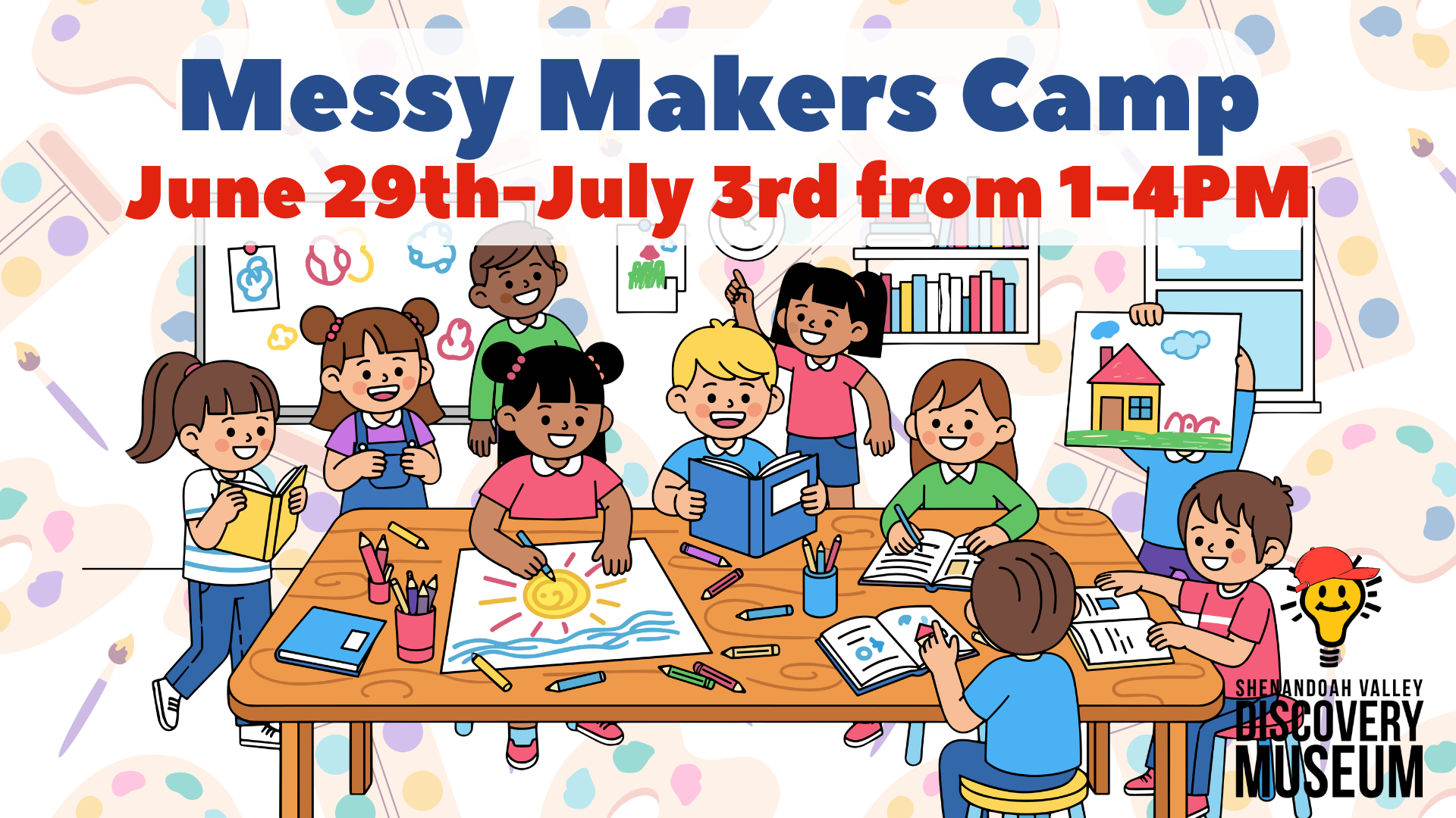Create crazy creative art work your parents would never let you try at home in this messy art camp!